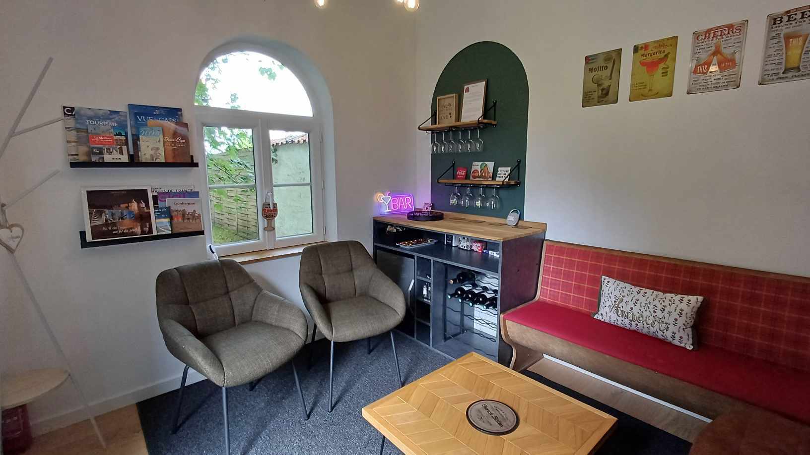 Dans cet espace partagé, vous pourrez vous détendre autour d’un verre, lire ou échanger avec les autres hôtes.