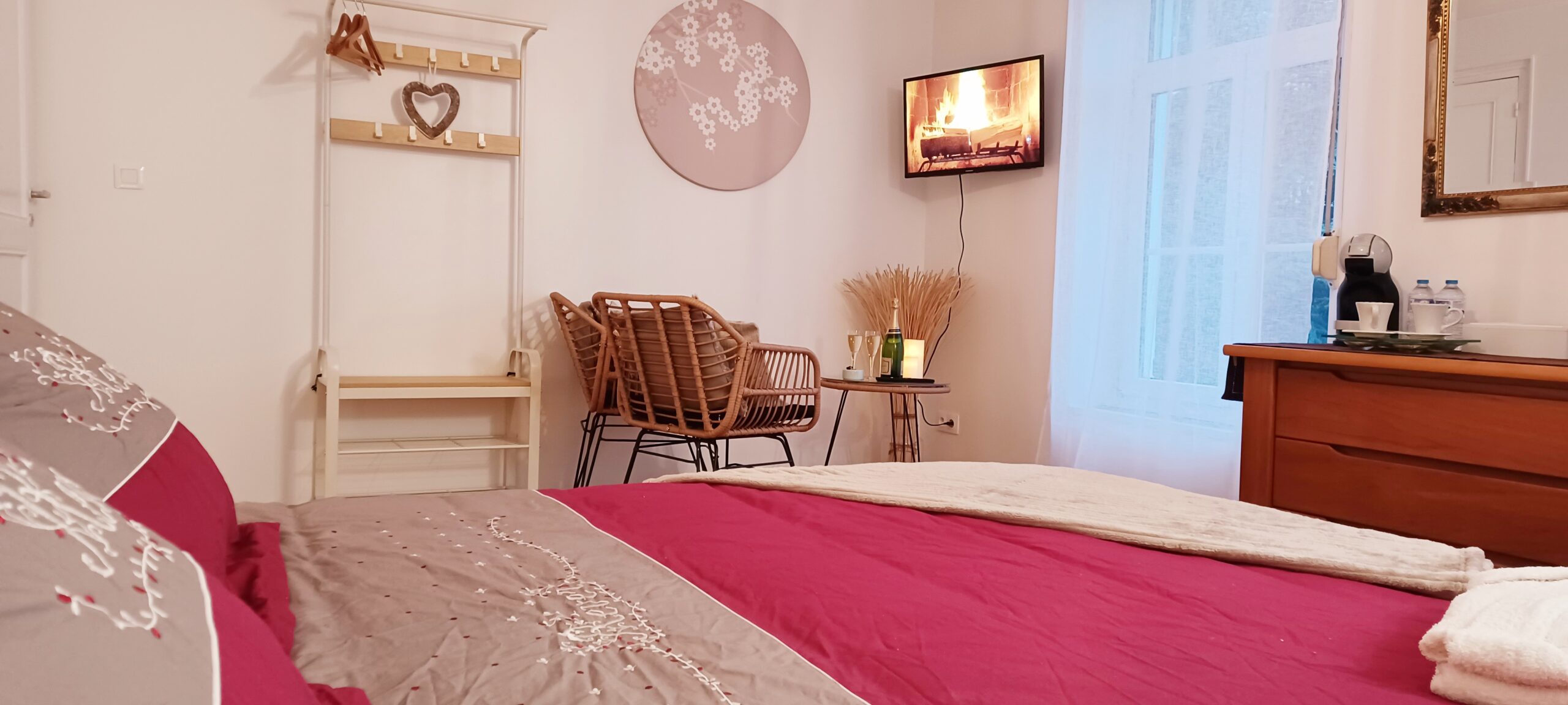 Nichée en rez-de-jardin, la chambre Opale se situe dans une dépendance entièrement rénovée, adjacente à notre maison d’hôtes. Son accès facile et son cadre paisible en font un véritable havre de sérénité. Laissez-vous séduire par son lit king-size invitant au repos, son coin salon baigné de lumière avec une vue apaisante sur le jardin, ainsi […]